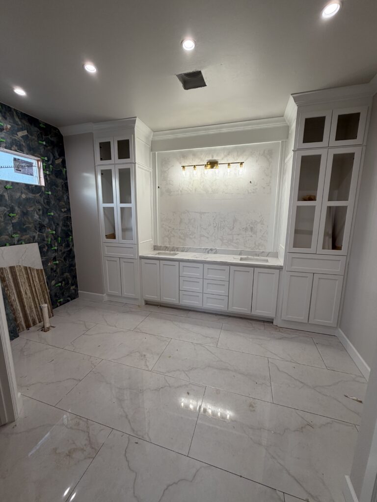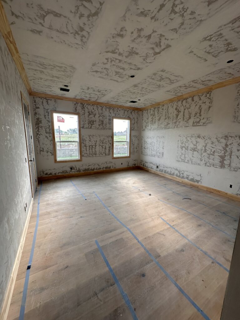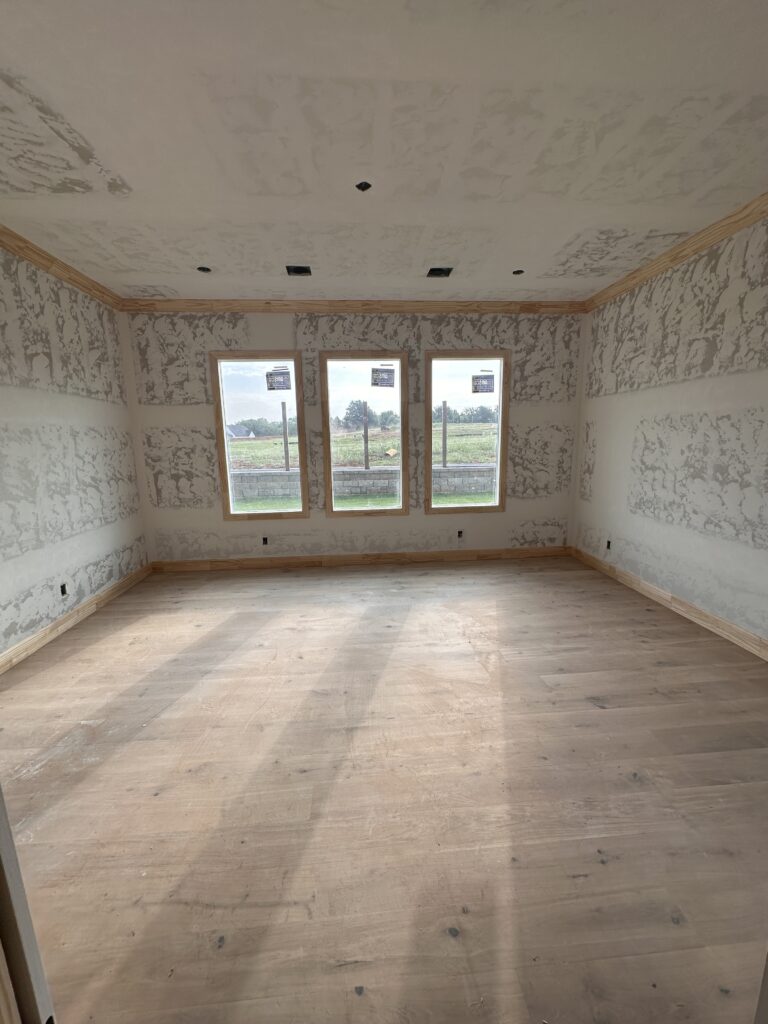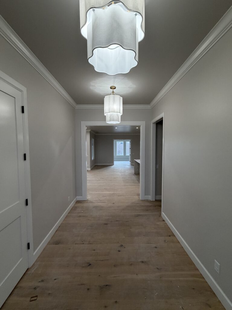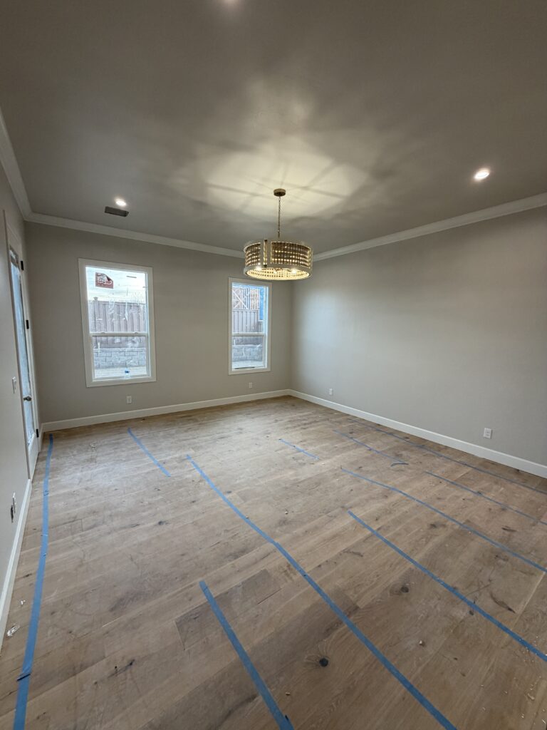 Solid core 8ft doors, 7″ wood floors in main living areas, Wolf range and oven, 36″ built in refrigerator